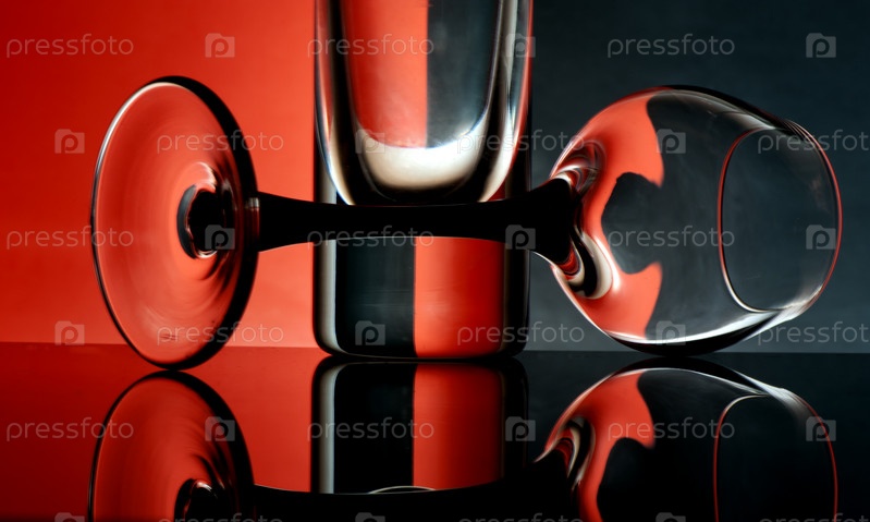 Стеклянные бокалы на цветном фоне