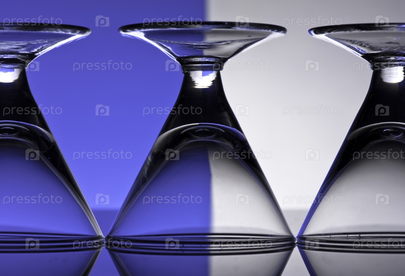 Стеклянные бокалы на цветном фоне