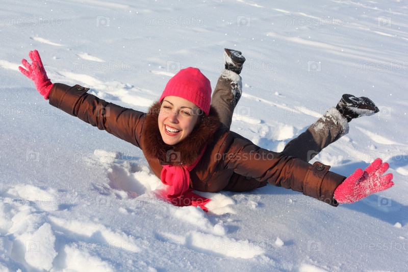 Молодая женщина лежит на снегу