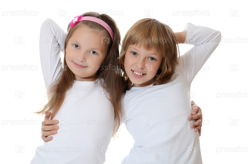 Две подружки на белом фоне