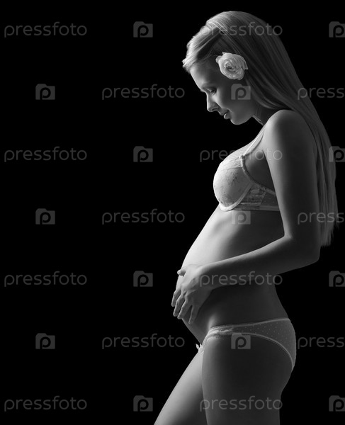 Беременная женщина на черном фоне
