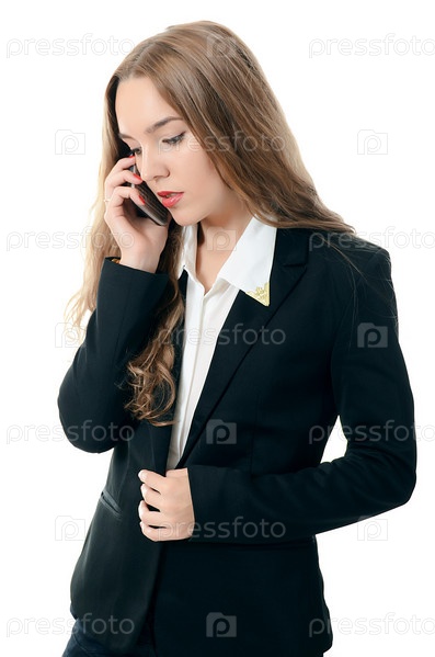 Портрет бизнес-леди, говорящей по телефону