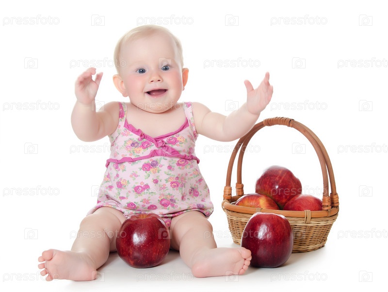 Маленький ребенок с красными яблоками