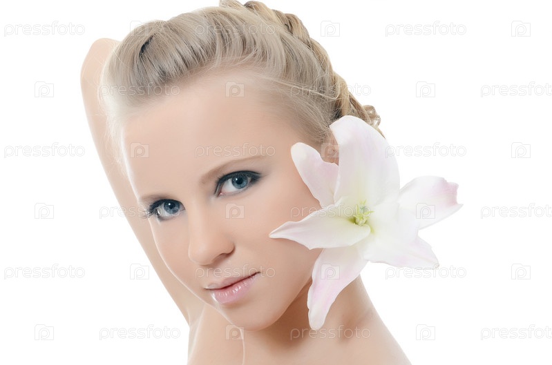 Красивая блондинка с цветком лилии