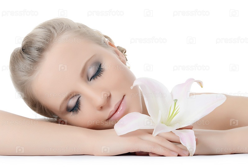 Красивая блондинка с цветком лилии