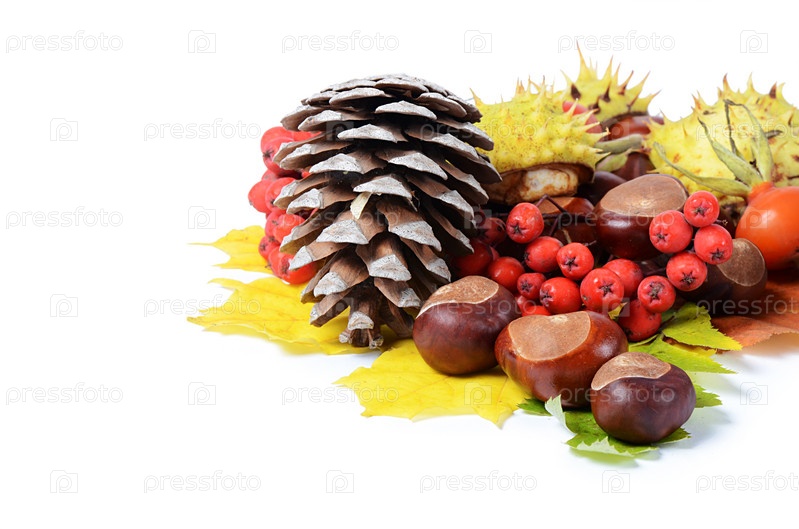 Каштаны на осенних листьях
