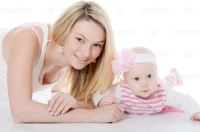 Мать с ребенком на белом фоне