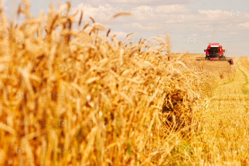 Комбайн, работающий на пшеничном поле