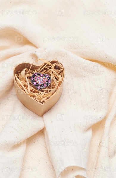 Кольцо в картонной коробке в форме сердца