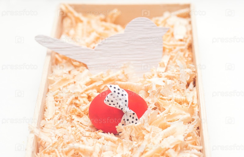 Красное яйцо с деревянной птицей