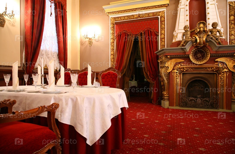 Стол и камин в ресторане