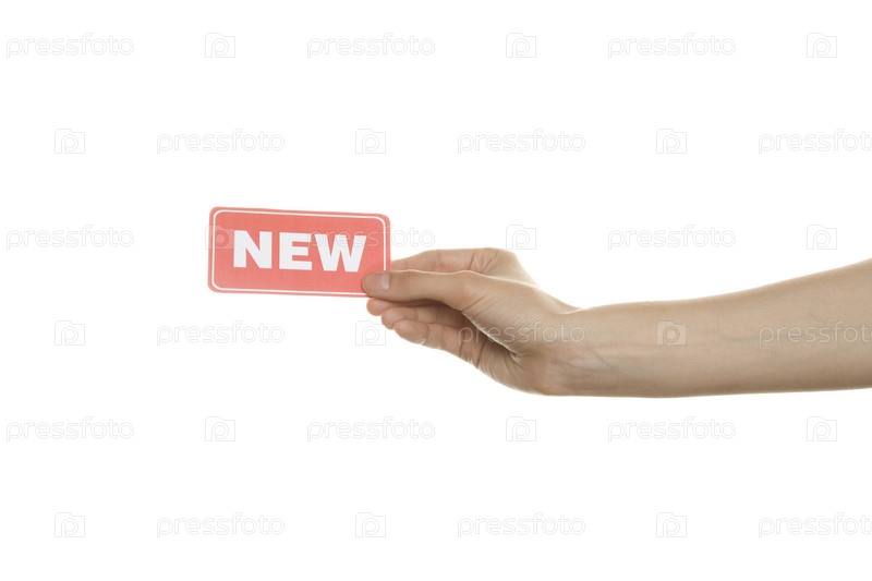 Табличка "Новинка" в руке на белом фоне