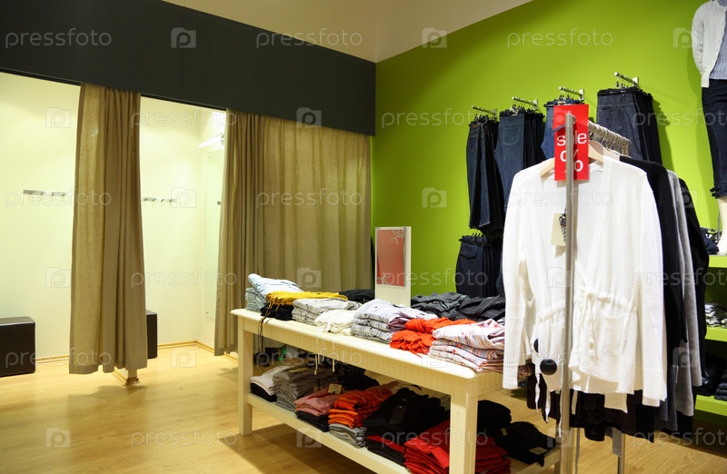 Интерьер магазина одежды с примерочными