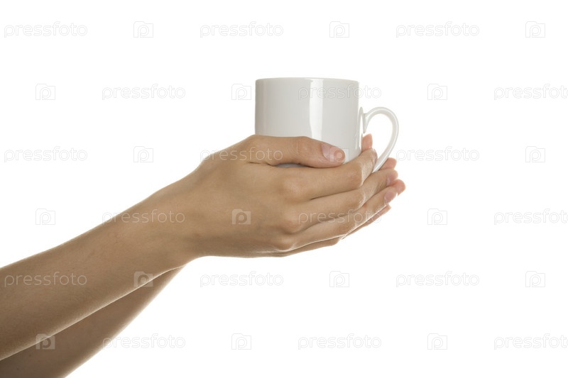 Руки держат кружку на белом фоне