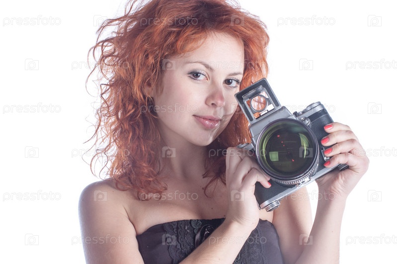 Красивая женщина с фотоаппаратом