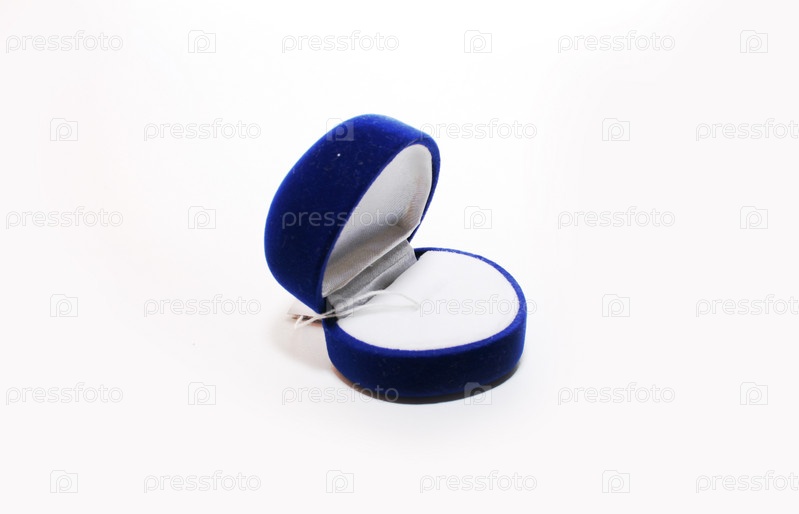 Синяя бархатная коробочка для ювелирных изделий на белом фоне