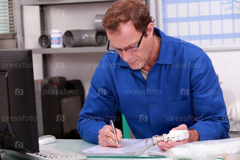 Строитель работает в офисе