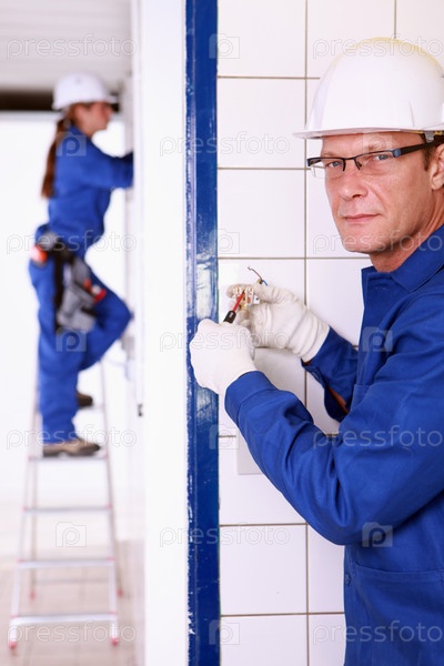 Мужчина и женщина делают электропроводку