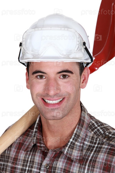 Счастливый работник с лопатой