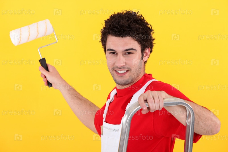 Маляр держит валик