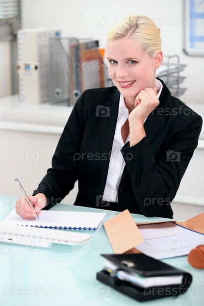 Улыбающиеся женщина за письменным столом