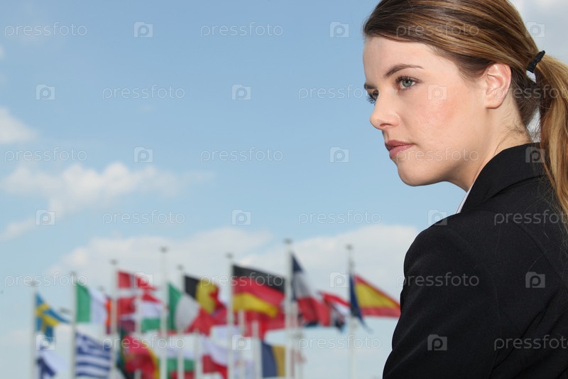 Женщина на фоне флагов