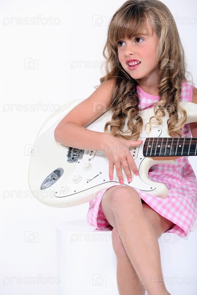 Белокурая девочка играет на электрической гитаре