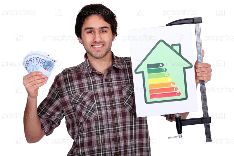 Мужчина, держащий диаграмму потребления энергии и много денег