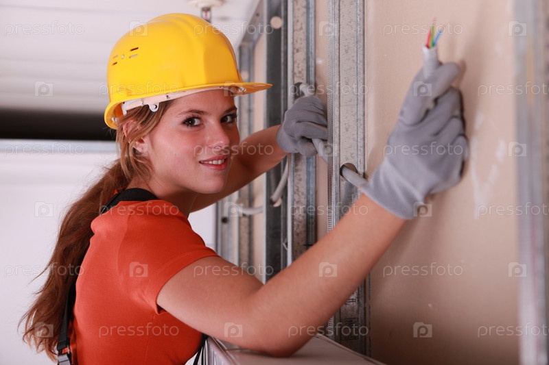 Строитель делает электропроводку