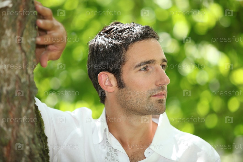 Красивый мужчина возле дерева в парке