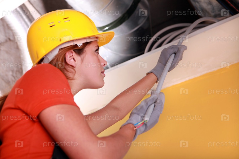 Женщина-электрик на работе