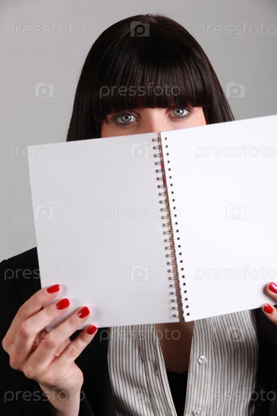 Женщина прячется за ежедневником