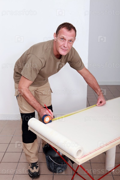 Мужчина замеряет обои