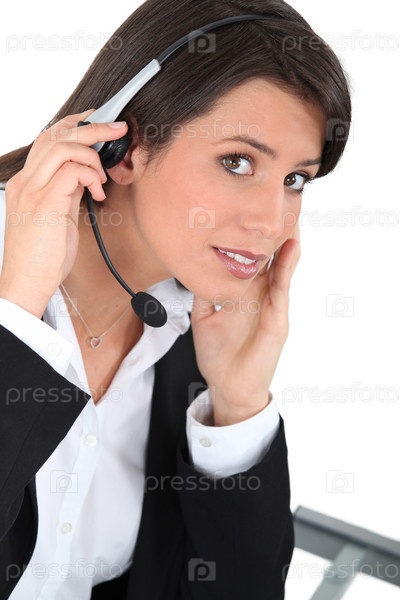 Молодая женщина носит гарнитуру