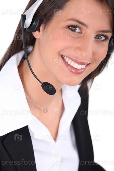 Молодая женщина носит гарнитуру
