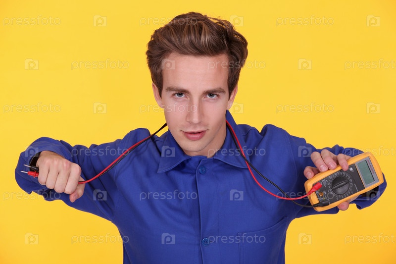 Электрик делает замеры