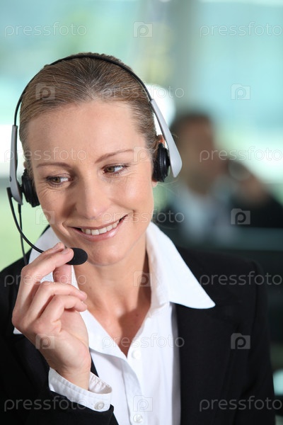 Молодая женщина носит гарнитуру