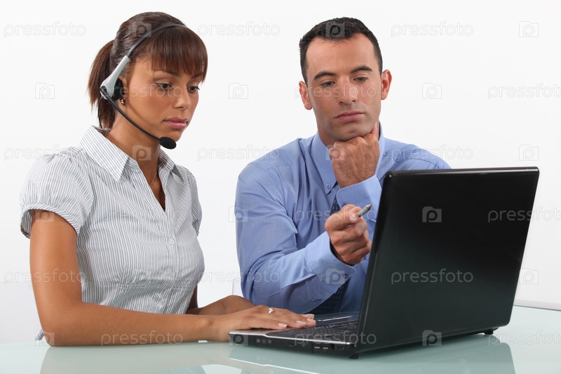 Деловая пара с ноутбуком