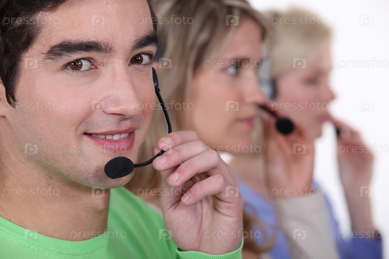 Молодые люди с телефонной гарнитурой