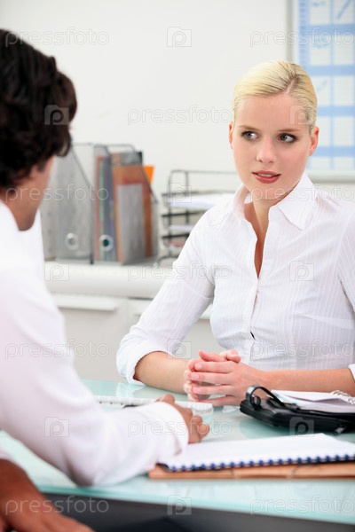 Пара общается за рабочим столом