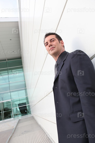 Бизнесмен за пределами офиса. Низкий угол