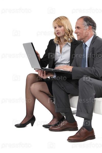 Босс и сотрудник смотрят на монитор ноутбука