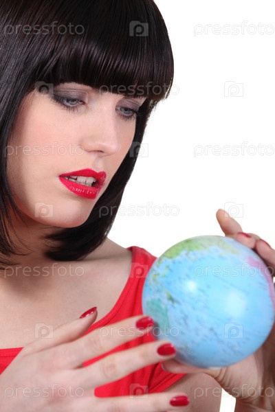 Женщина ищет место на глобусе