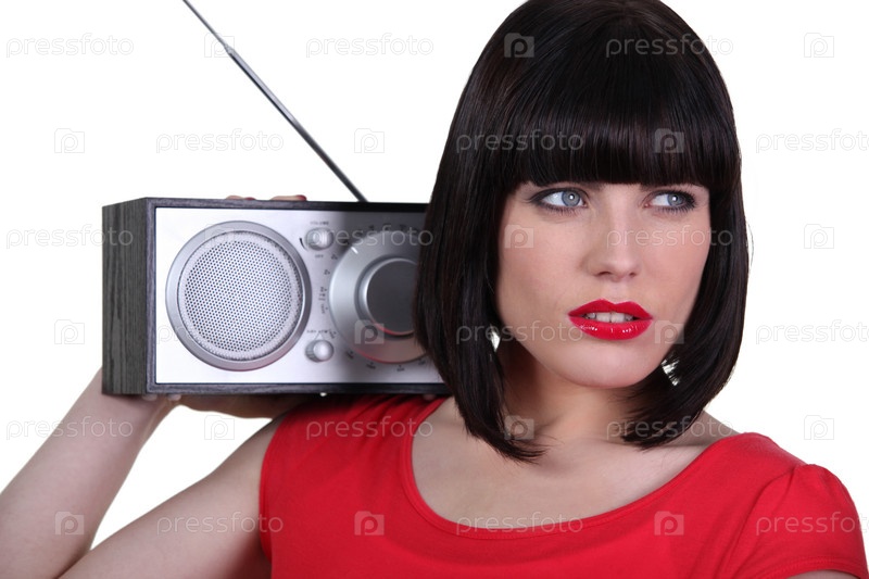 Брюнетка с радиоприемником на плече