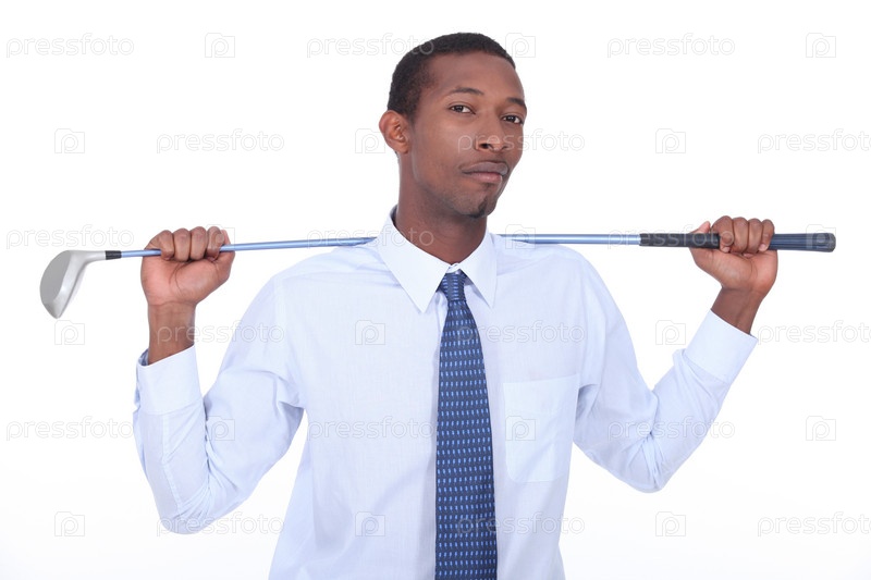 Бизнесмен держит клюшку для гольфа