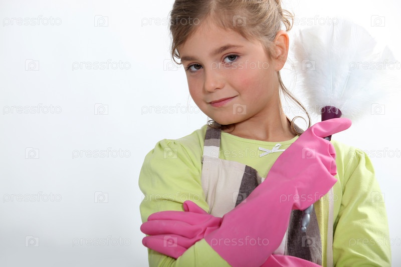 Маленькая девочка с метелкой для пыли