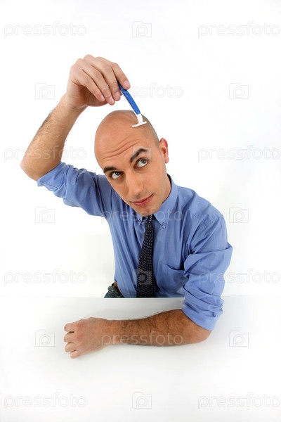 Человек бреет голову
