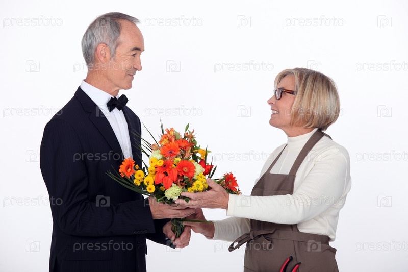 Мужчина покупает цветы