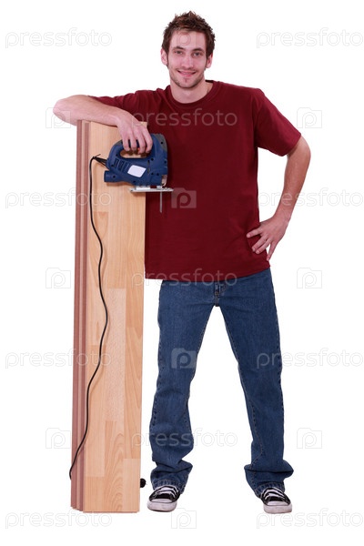 Укладчик паркета на белом фоне