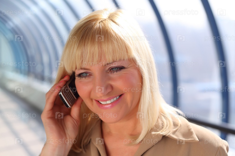 Женщина средних лет говорит по сотовому телефону